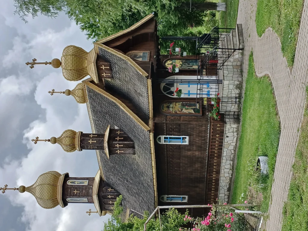 Biserica est entièrement construit en bois et est assez récent. Il n'a que 15 ans. Le bois est très soigneusement travaillé. Il y a de nombreux motifs sculptés dans le bois. C'est l'une des plus belles petites églises en bois que j'ai vues. Le nom de l'église est St Athanasius et elle a été consacrée il y a seulement trois ans. Le lieu de culte est dirigé selon le rite orthodoxe ancien (Staroveri). Les fêtes y sont toujours célébrées dans le style julien ancien, tout comme dans l'église russe, à la différence qu'elles ne sont pas célébrées en slavon mais en roumain. Cette église appartient à une métropole autonome, basée à Slătioara, commune de Rășca, département de Suceava. Nous retournons à Mila23, bien sûr en chemin nous capturons le splendide coucher de soleil, nous nous retirons pour l'hébergement et le dîner.